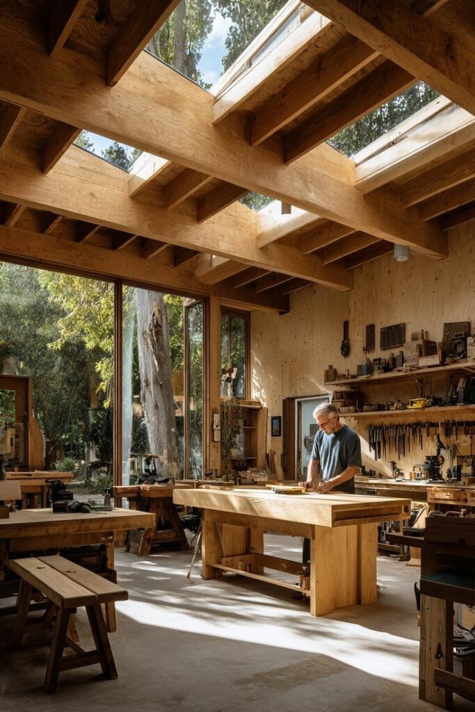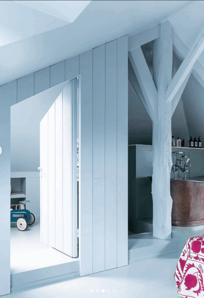 Peindre les poutres dans la même teinte que le plafond ou les murs les “intègre” dans l’ensemble, ce qui allège la sensation d’écrasement et réduit la pression ressentie.